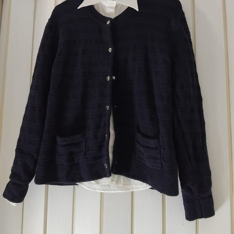 Kaunis a-linjainen neuletakki, menee monenlaisessa käytössä vuoden ympäri. Valitettavasti itselle nyt väärän kokoinen, käyttämättä jäänyt. Erinomainen kunto. Oli tyyris uutena :) Materiaali 100 % puuvilla.