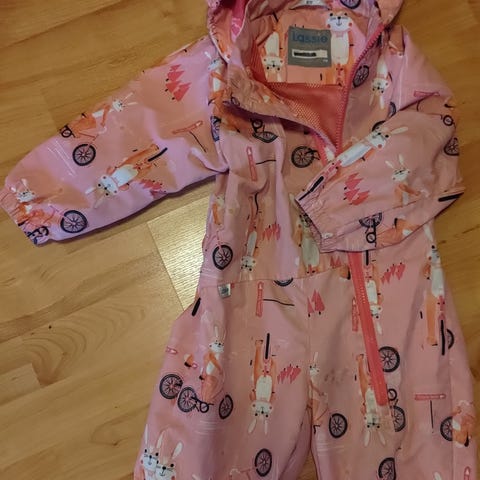 Remu/Travalle -ulkohaalari (kevät, syksy, välikausi). Koko 80 cm. Käytetty, polvissa ja takamuksessa kulumaa, mutta ehjä. Väri sininen (keltainen ja vihreä). Käyttökelpoinen haalari.