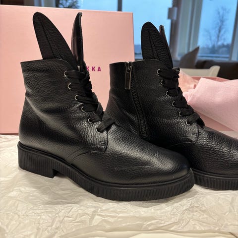 Minna Parikka Bunny Boot ruskeassa värissä. Koko on 38. Käytetty hyvin vähän. Laadukkaat nahkakengät. Sopivat monenlaisiin asukokonaisuuksiin ja arkikäyttöön. Hinta ei sisällä toimitusta.
