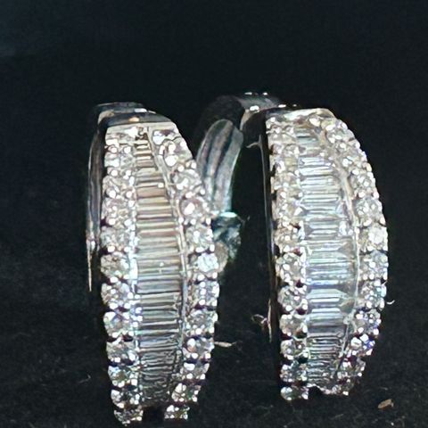 Korvakorussa 16 pientä timanttia= yhteensä 32 timanttia, väri Wesselton, puhtaus P, karaatteja 0,16 ja sinisafiiri (halkaisija noin 3 x 3 mm).