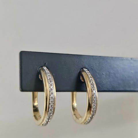 Kultakeskus Hämeenlinnan valmistamat 14 karaatin kultaiset Kohinoor timanttikorvakorut sinisafiirilla, NW 585, mallinumero 143-252223 sekä punaisilla kirjaimilla 019585 (vanhaa tuotantoa).