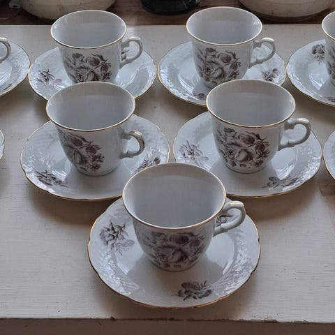 Täysin ehyet espressokupit 6kpl, kultareunus, korkeus 5cm.