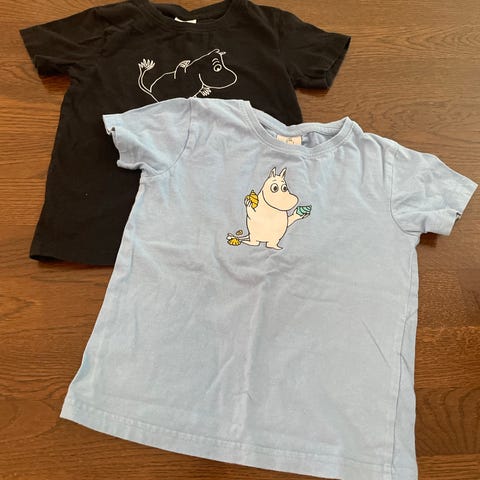 Kaksi kpl samanlaista Muumi paitaa. Koko molemmissa 110 cm. Käyttämättömiä. Yhteishinta 5 e.