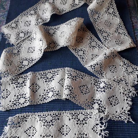 Käyttämätön pitsipala, kaunis kuvio, leveys 13 cm ja palan pituus on 2 m 30 cm.