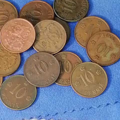 Myydään pussillinen, n. 400kpl, suomalaisia 10 pennin kolikoita.