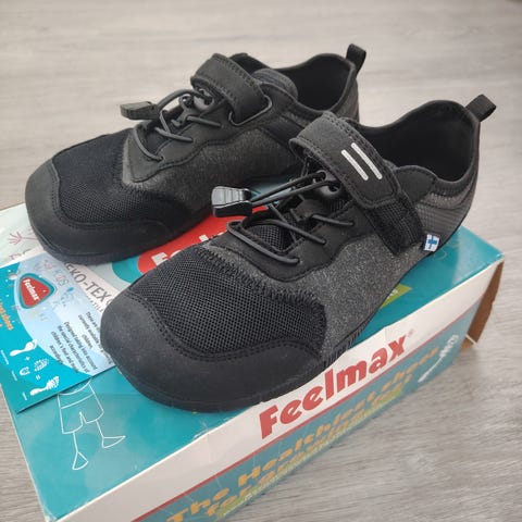 Myydään Feelmaxin pj-kengät, joissa erillinen irtopohjallinen kylmyyttä vastaan. Sisällä "karva"vuori. Käytetty puolikas talvi. Kärjen päällä vähän pintalikaa. Oikean kengän kärjestä liimaus vähän auki.