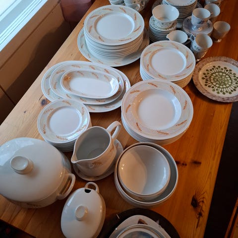 Suuri astiasto, hopeaa, kupronikkeliä, messinkiä, pronssia.