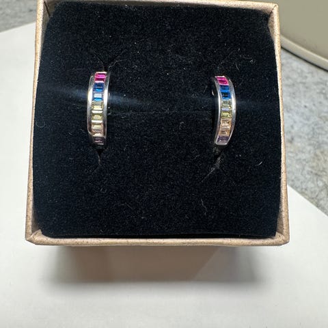 Myydään uudet hopeakorvarenkaat, joissa koristeena tähdet. Materiaali sterling hopea ja kirkkaat zirkoniat. Leimattu S925 hopealeimalla.