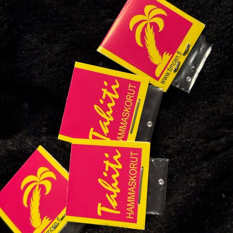 Myydään kuvan mukaiset Tahiti merkkiset avaamattomat hammaskorut.