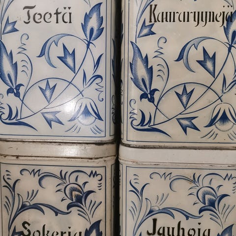 Skooli 150 €, keittokuppi sekä aluslautanenyhteensä 30 € kappale.