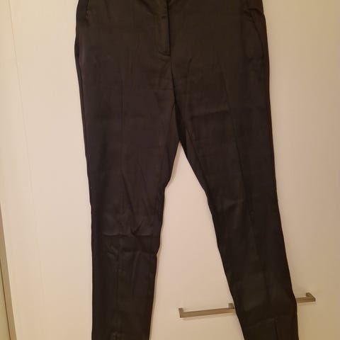 Myynnissä Vilan mustat housut. Edessä isot vetoketjut valetaskuissa. Koko S. 5e