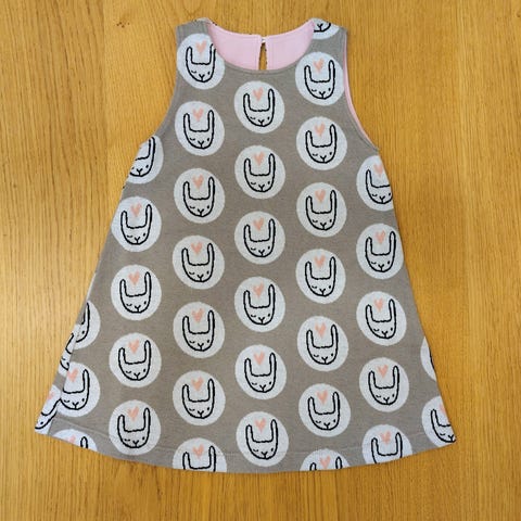 Lumileopardi-kuosinen pop & co trikoomekko, koko 92. Uutena ostettu, vain paristi pidetty.