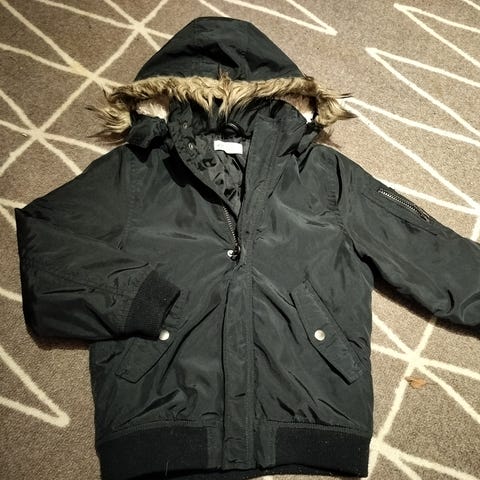 Siistikuntoinen musta kappahl kevyttoppa bombertakki, koko 128. Huppu irroitettava jolloin juhlallisempi. Hupulla sporttisempi. Käytetty pari kertaa, tahraton, ei pesty kertakaan. Kevyesti topattu.