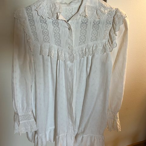 Olkapäät leveys n.44cm, hiha n.62cm pussimaiset kuin myös puserokin, pituus n.70cm. Irrallinen solmittava rusetti.