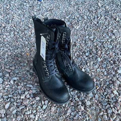 Siistit bootsit, pienellä leveällä korolla ja vahvalla nahalla. Leveät vahvat venykkeet ja lenkit. Tosi siistit