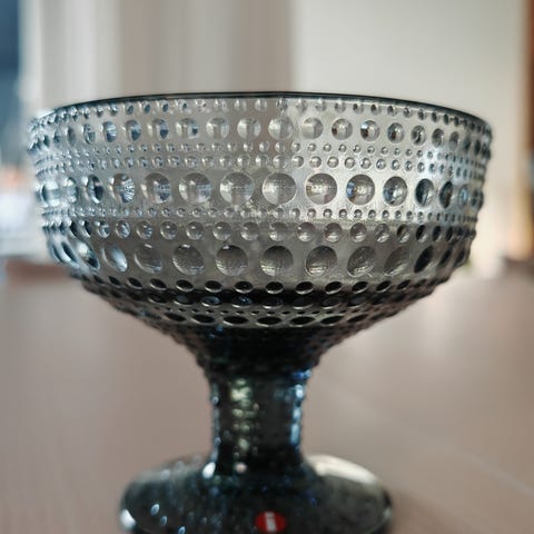 Värisävyn nimi on Harmaa. Jälkiruokakulho , 35cl. Toki voi käyttää esim. myös sokerikulhona. Itse käytin karkkikulhona pari kertaa ja sen jälkeen jäi käyttämättömänä kaappiin. Nouto kotootani Pakkalasta tai voimme tavata myös Tammistossa. Maksu käteisellä ja tuothan tasarahan.