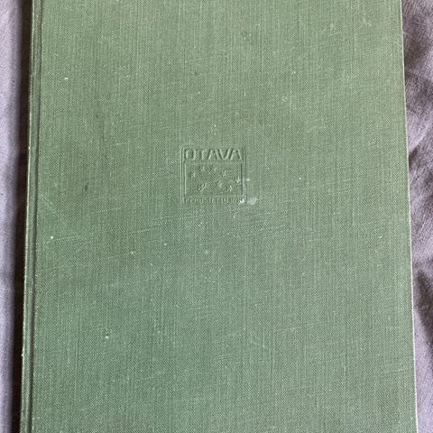 Hyväkuntoinen kovakantinen kirja ilman kansilehtiä. Omistuskirjoituksella ja muutama tahra sivuissa.