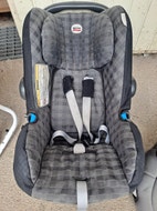 Kuvien mukainen ensi istuin autoon vauvalle. Meille jäipi jo pieneksi. Kuvissa kankaassa vielä tahroja. Pesen kankaan ennen myyntiä.