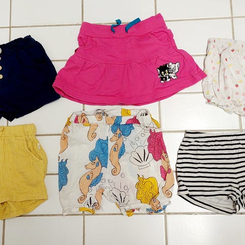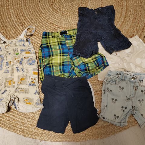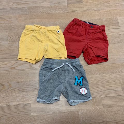 Myydään shortsipaketti: kolmet shortsit, koot Tutta 80 / Kaxs 86 / Libero 86 / 92 cm. Liberopaita, jossa tahraa edessä halutessa mukaan. Eläimetön talous.