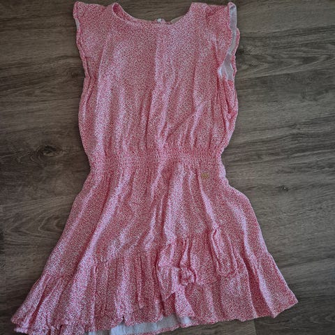 Vyötärön kohdalla (ks. viimeinen kuva) 4 cm. + 1 cm. kosmeettinen repeämä, tämän saa osaaja nätisti korjattua huomaamattomaksi. Mekon käyttöä tämä ei haitta. Huomioin tämän mekon hinnassa.