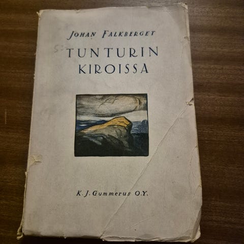 Hyväkuntoinen kovakantinen kirja ilman kansilehtiä.