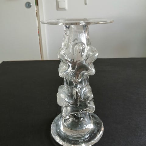 Riihimäen lasin kasperi maljakko, korkeus 18cm. Erkkitapio siiroinen.