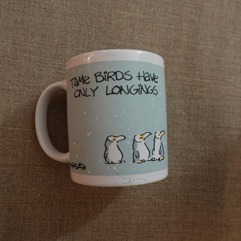 kahvan kohdalla lintufiguuri