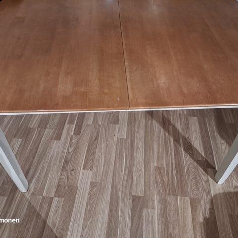 Surakasta aikoinaan ostettu ruokasalin pöydäksi. Pöytä on lähinnä ollut koristeena, eli ei juurikaan ollut ruokailukäytössä. Kaunis punertavan ruskea väri, päällä sumennettu lasilevy.