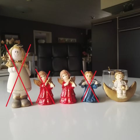Kuvan mukaiset koriste-enkelit etsivät itselleen uutta kotia. Hp: 3€ kaikki 5kpl. Vain nouto.