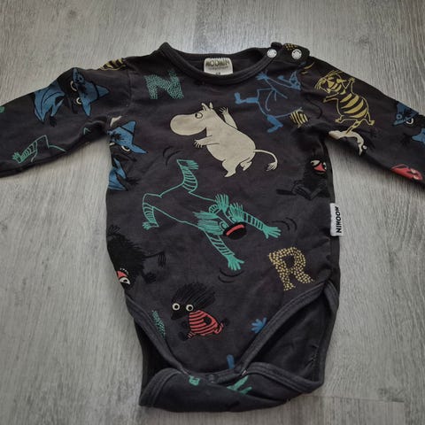 Muumin pikkumyy ja noa noa merkin bodyt koossa 68. Hyvä käytetty kunto, uudesta haalistuneet.