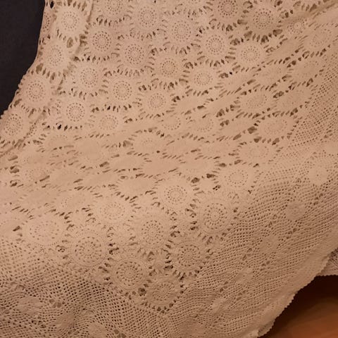 tilkkutyönä tehty päiväpeitto. koko 105 x 183
