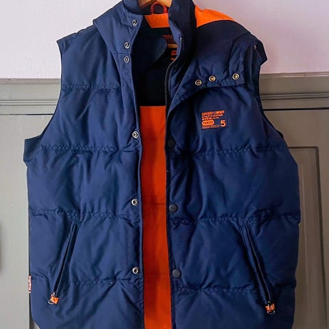 Lämmin huppu, hyvä vetoketjusuljenta, vetoketjulliset taskut, bränditägi sivussa, brodeeraukset edessä. Koko miesten L mutta kuten merkille tyypillistä, vastaa pienempää kokoa, eli tämä vastaa miesten M kokoa. Kainalo-kainalo 54cm pituus 66cm.