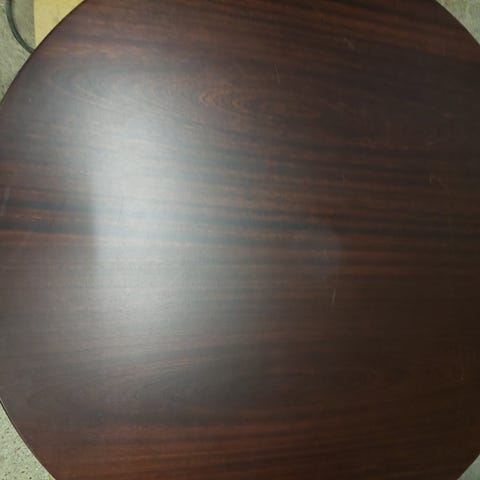 Pyöreän pöydän halkaisija 90 cm, hinta 60 euroa.