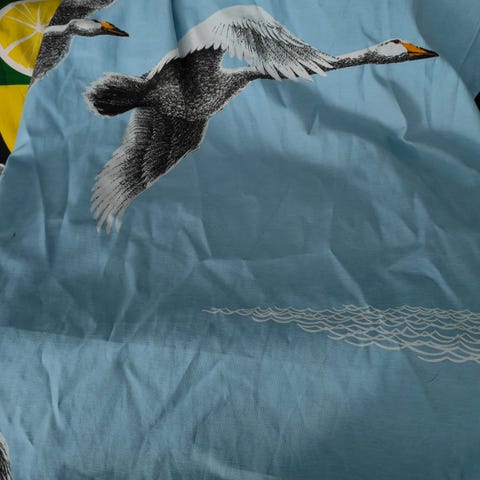Kaksi Vallilan koristetyynnynpäällistä. Käytössä olleet, tummemmassa hieman pintahaalistumaa ja toisella puolella kudelmassa paksumpi säie.