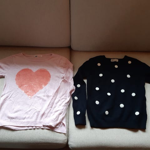3 kpl neuleita. Neulepaidat merkki H&M ja koot 134/140. Materiaali puuvilla, polyamidia ja villaa. Neuletakki Benetton, koko 130, puuvillaa. Kaikki käytössä olleita, siistejä.
