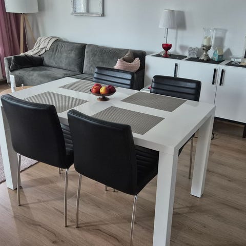 Myyn pöydän hintaan 120 euroa. Kuvissa näkyvät valkoiset pinnatuolit eivät sisälly hintaan, mutta voin myydä kolme pinnatuolita hintaan 120 euroa.