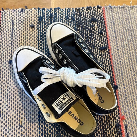 Punaiset Converset.Ei tuu mahtumaan enää meidän nuorimman lapsen jalkaan tulevana keväänä.Hyväkuntoiset.Pientä kulumaa kantapäissä,mutta muuten todella siistit.