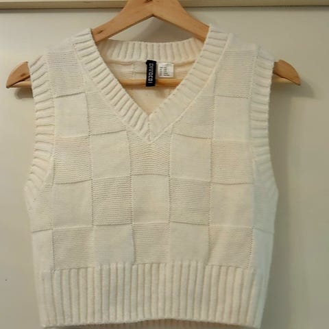 Palmikkoneuleliivi tekokarvakauluksella. Väri beessi
