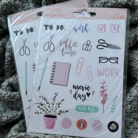 Winter Wonderland Planner -tarrat. Söpö handmade tarra-arkki, joka sopii hyvin kalenterin tai bulletjournalin koristeluun. Kaksi kokoa saatavilla: pieni (10 x 14cm) hinta 3e ja iso (14 x 18cm) hinta 4e