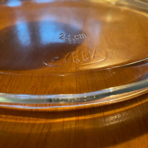 Myynnissä kuvassa oleva Pyrex merkkinen, paistinpannun kirkas lasinen kansi, jonka kokonaishalkaisija on 25 cm, astia johon sopii täytyy olla halkaisijaltaan 24 cm.