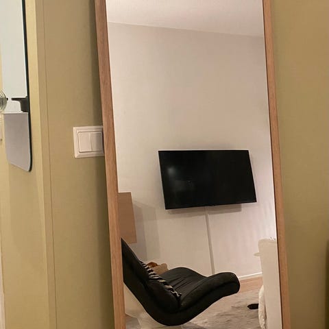 Musta, tammikehyksinen Georg -peili. Leveys 56cm, korkeus 190cm. Erittäin hyvässä kunnossa.