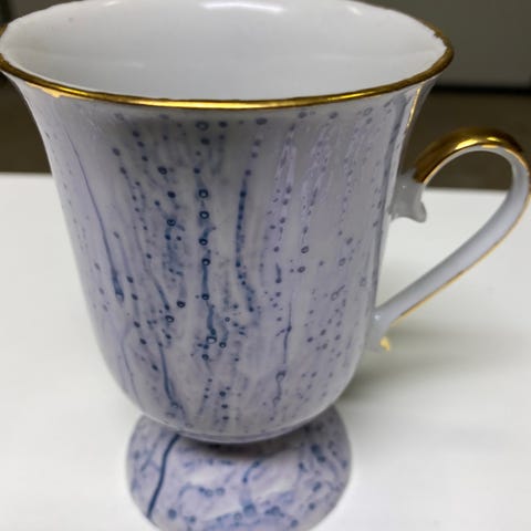 Valkoinen/pinkki muki. Siisti ja ehjä