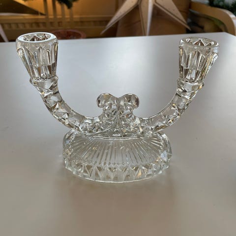 Kirkasta lasia oleva Aurora kynttilänjalka. Design Heikki Orvola, Nuutajärvi. Korkeus 15cm.