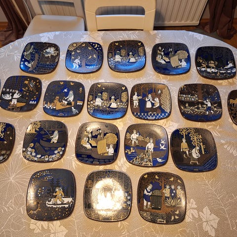 15 kpl Arabian vuosilautasia v. 1985-1999. Muutamassa pahvikotelo tallella.