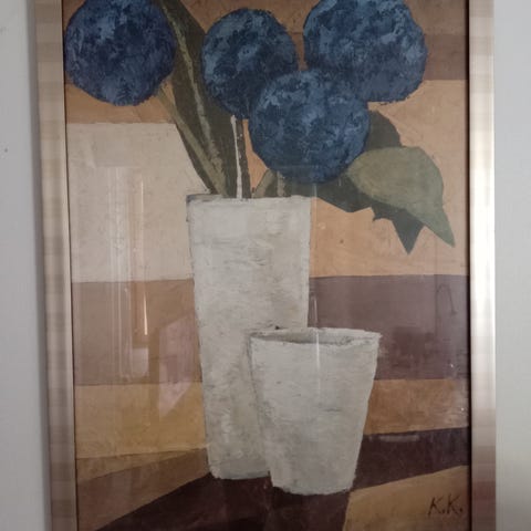 R. Hakalan akvarellityö. Metallikehyksissä, koko 70 x 90.5 cm. Erittäin hyväkuntoinen.