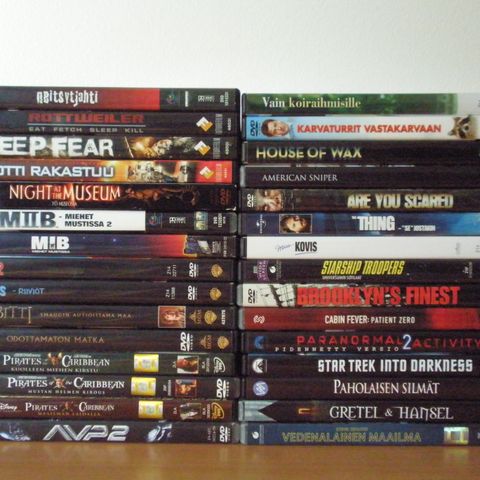 Dvd-leffoja myynnissä. 1 euroa kpl+postikulut 5,5e, tai nouto Forssasta. Isompi satsi postipakettina. Annan lisätietoja kysyttäessä. Monessa leffassa esim. extroja yms.