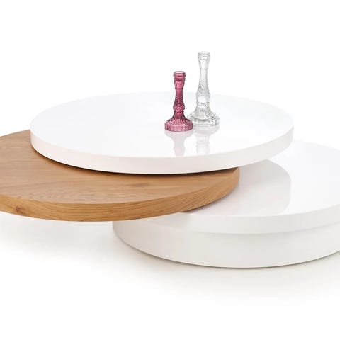 Pyöreä pöytä, massiikoivua. Käsintehty Ukrainassa. Korkeus 42 cm, halkaisija 90 cm, paksuus 5 cm. Pöytä on painava, ehkä 25-30 kg. Irrotettavat jalat.