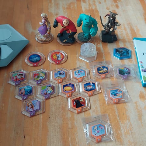 Myydään WiiU konsolille tarkoitettu Disney Infinity-peli sekä siihen kuuluva lauta + peruspelien osat. Alkuperäiseen startteripakettiin kuuluivat yksi hahmo jokaiseen peruspeleihin: Monsterit yliopistossa, Pirates of the Caribbean ja Ihmeperhe. Tämän setin lisäksi myydään myös loput Ihmeperheen hahmot sekä lisähahmo kahteen muuhun peliin.