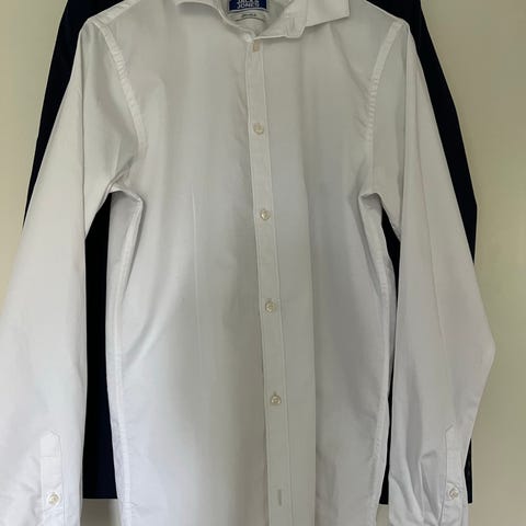 Samaa kokoa löytyy myös Jack&Jonesin valkea kauluspaita, 98. % puuvillaa ja 2 % elastaania. 10 e.