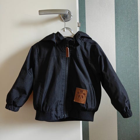 Myydään erittäin hyväkuntoinen musta Mini Rodini Wind Jacket koossa 80/86.
